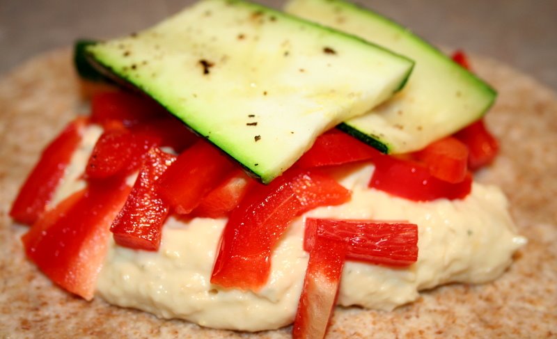 I am away this week (we are hunting for houses and schools in New York for the big move in August) but am attempting to keep up some virtual blogging. This is a version of one of my favourite quick meals – sometimes I grill the veg, sometimes not, or add cheese, jalapenos, spinach and so on. Tasty and good for you too.