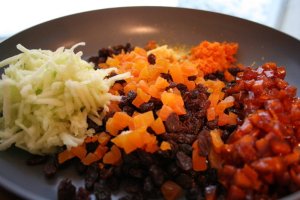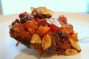 - The filling is done when the peels, apricot and raisins are soft and plumped up and everything has come together in a sticky, glossy mass