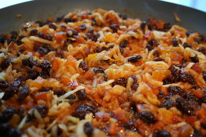 - The filling is done when the peels, apricot and raisins are soft and plumped up and everything has come together in a sticky, glossy mass