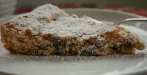 One of the appealing things about a meringue, apart from how it miraculously transforms from an unremarkable, gooey liquid into a fluffy, glossy cloud of loveliness, is the fact that you could – just about – throw anything into it and produce a delicious cake. This one has ground almonds and dates in it, crystallized ginger, orange peel, macadamia and walnuts. Perfect for a Passover dessert really, since it’s void of any flour and raising agents. It’s aromatic and its sweet, sticky fruitiness will guarantee its swift disappearance.