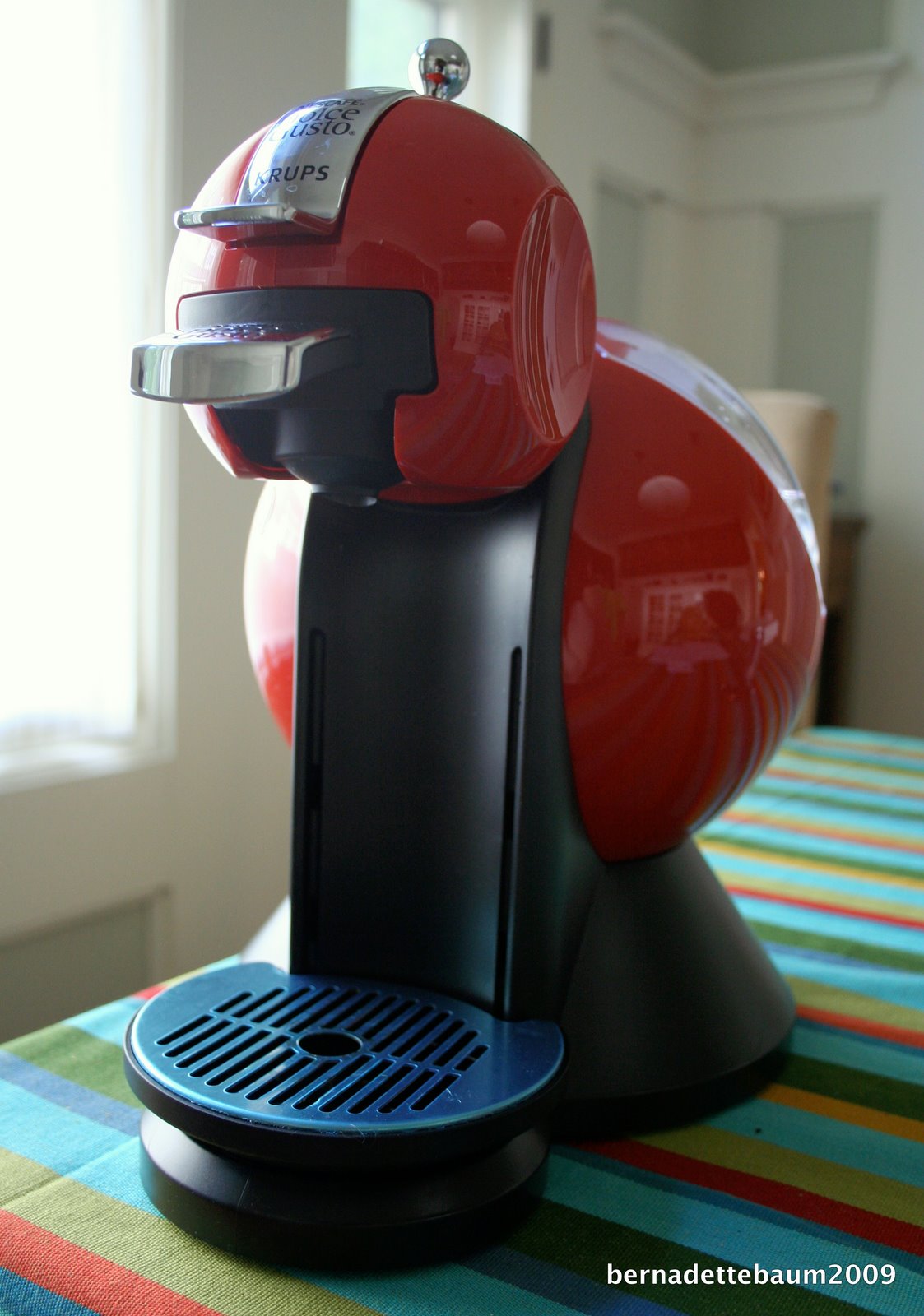 Enter the Krups Dolce Gusto coffee maker and a handy Bloomingdale’s coupon – we are now the proud owners of one of these caffeine-spouting ducks. With all the savings on offer to lure bean addicts, Richard figures the 15-bar coffeehouse-strength machine (which incidentally produces a very attractive cuppa with a layer of foam on top that’s very fit to drink) will pay for itself in three months. My latte macchiato was so delicious I frantically scoured the box for its calorie content, expecting to find all my optimism ground to bean dust. Thankfully, it was a neat 90 calories.