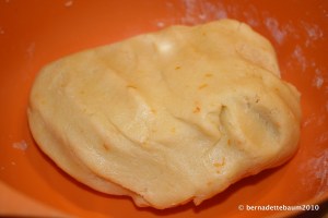 - Add egg mixture to the breadcrumby butter/sugar and bring it together into round piece of dough