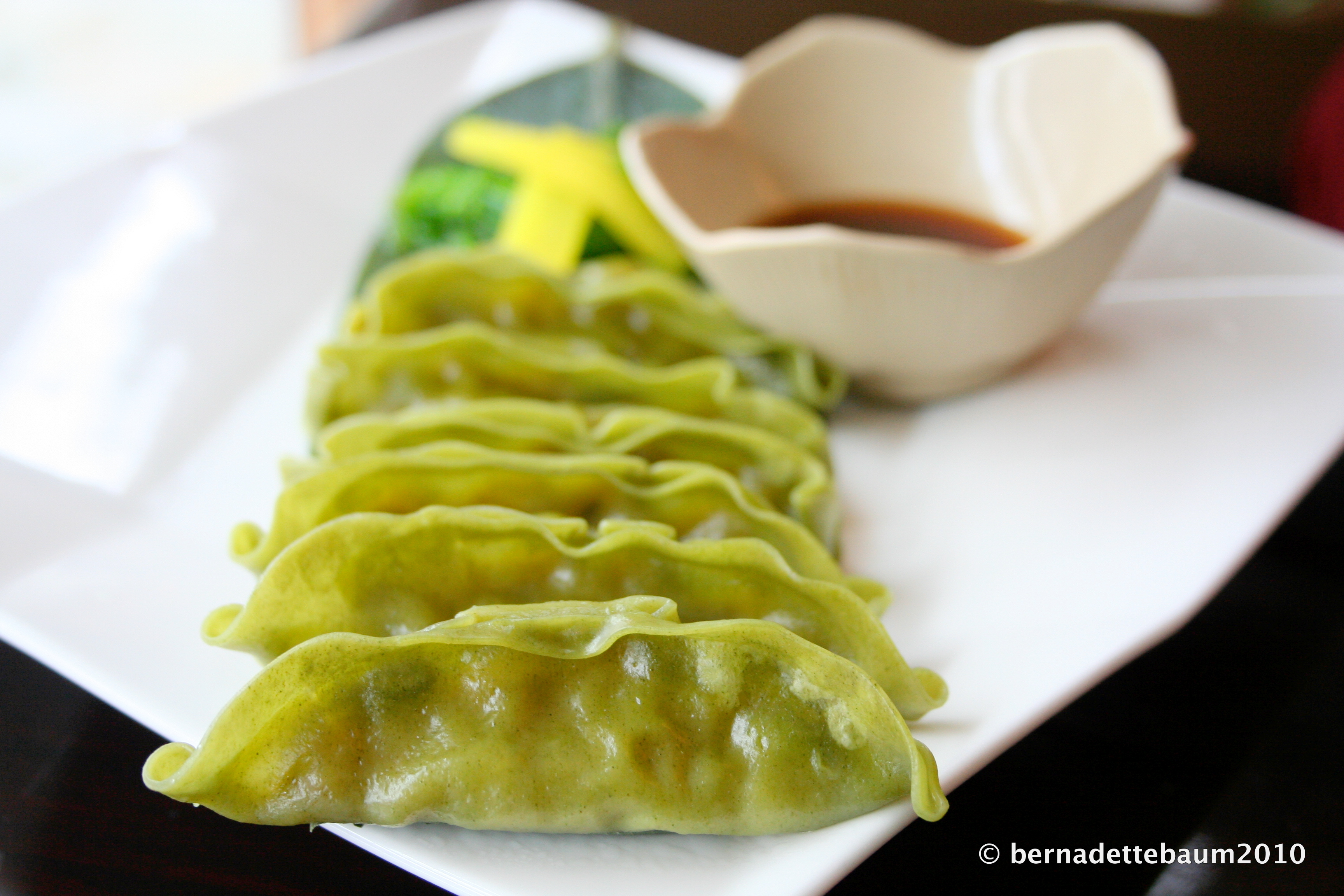Well, the dishes looked very appetizing (see photos), but none of the three stood out as having any particular flavor that we remember. A generic dumpling with no strong tone of ginger, garlic or any vegetable, generic wok-fried chicken (with no yumminess of pepper coming through at all, scent- or flavor-wise, and bog-standard noodle that was bereft of any herb or spice or seasoning that identified it as more, say, Chinese, than Southeast Asian or Thai (it certainly wasn’t Japanese).