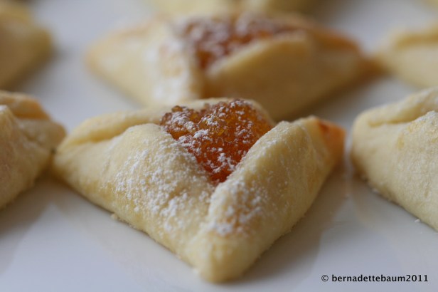 And also, with the eating of hamantaschen, shaped like Haman’s hat. Why anyone would be inspired to make a tart that looked like a villain’s hat is beyond me. But here’s how you make them. See here for previous recipes for pastry and fillings alike. This year, with a nod to my roots in Southeast Asia, I made a pineapple jam (these are traditionally used in tarts made during the Lunar New Year). Pineapple jam has more texture, flavor and aroma than applesauce, and is wonderful on toast or Weetabix.
