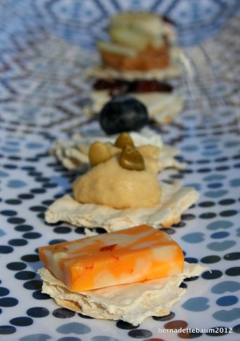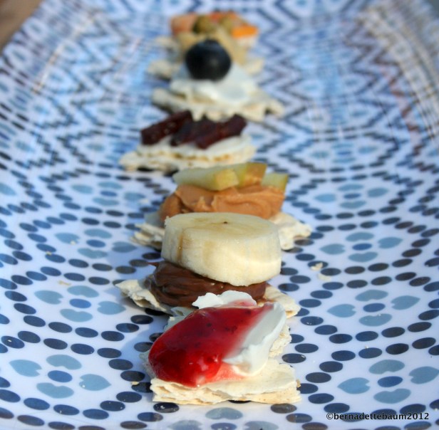 - Matzah and cream cheese, topped with cranberries, nuts, raisins or other dried fruit